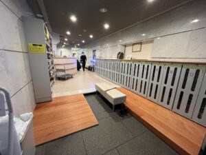 スリッパ入れは既存の本体を活かし、天板と側板のみを新しい造作家具と同じ材で仕上げ直しています。