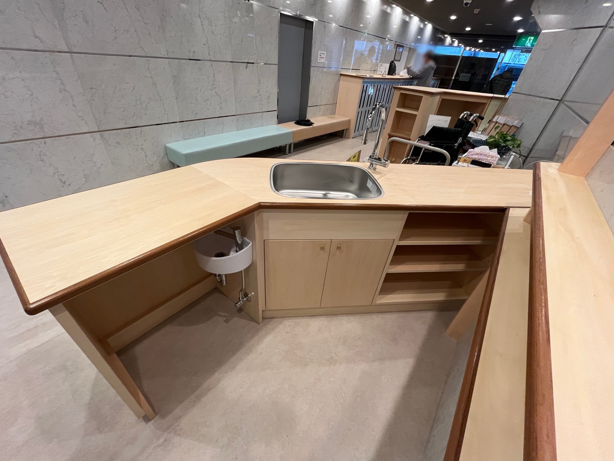 カフェメニューが提供できるように水栓設備も一緒に計画されています。