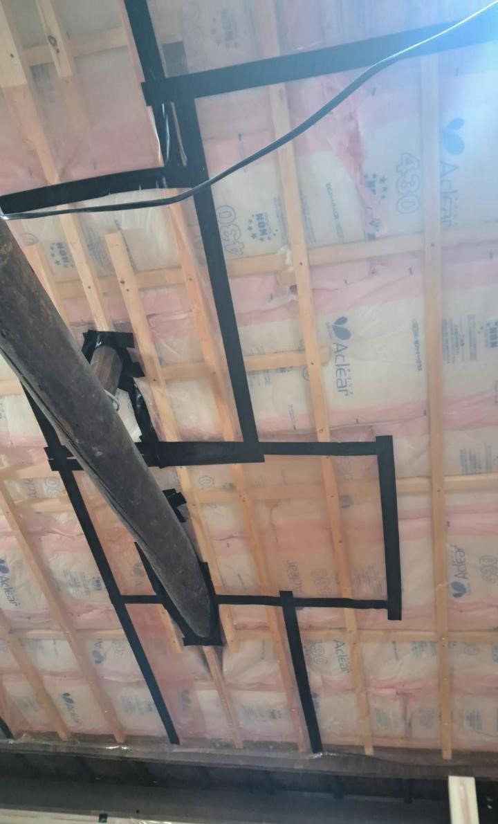2階は既存の梁(ゴロンボ)を活かしながら、断熱材を施工しています。
