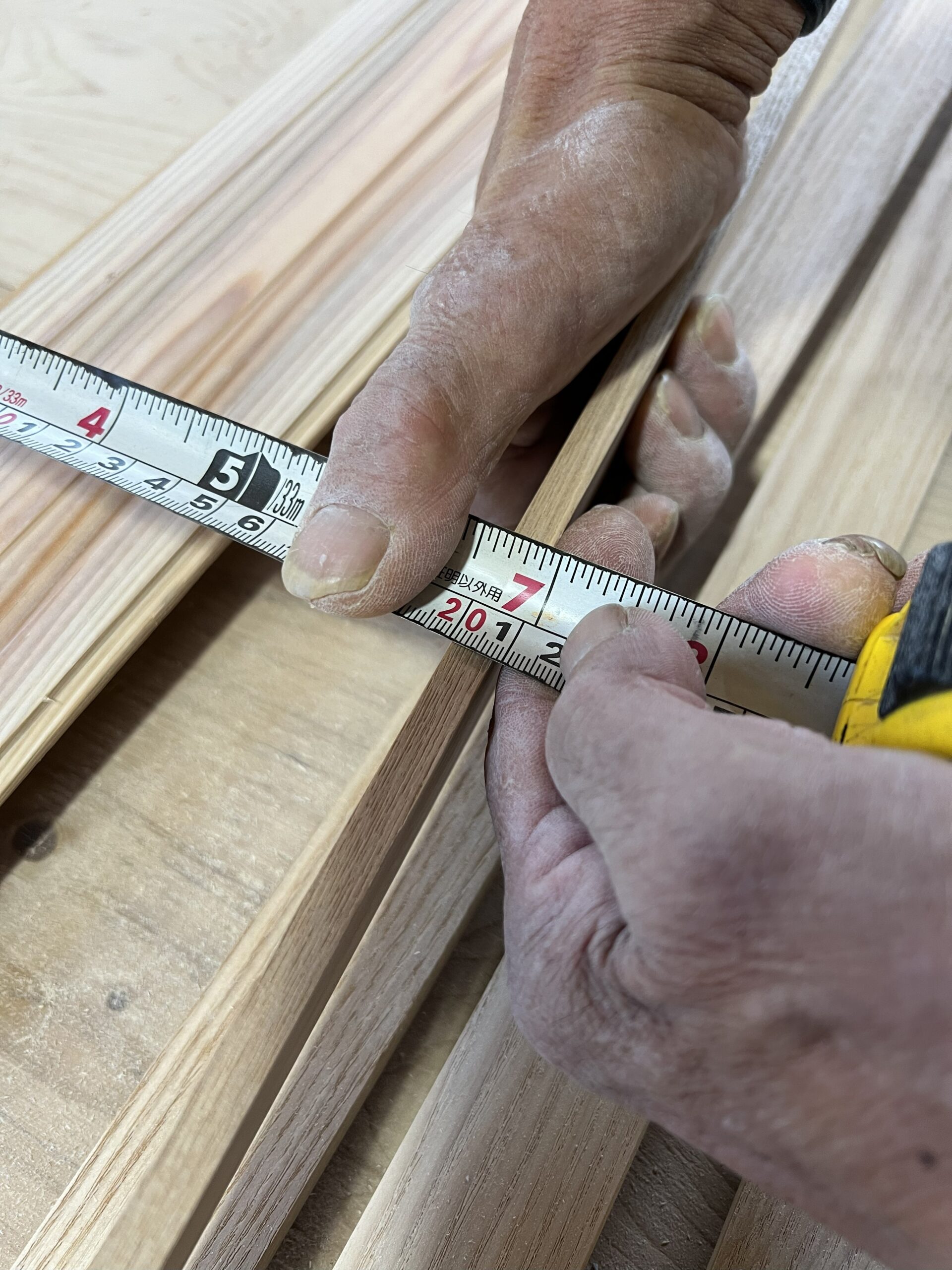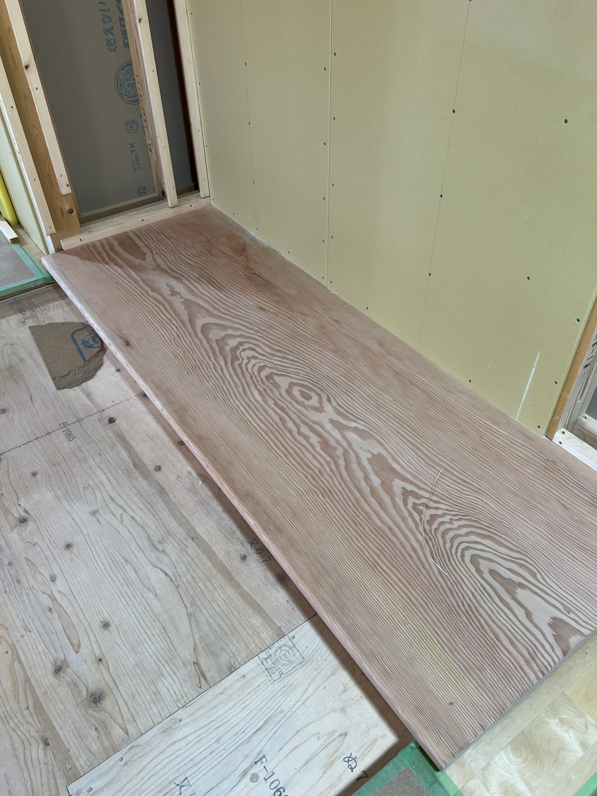 幅2メートル、厚み36ミリの地松材で、木目や色味の良いものを選び、ご提案させていただきました。