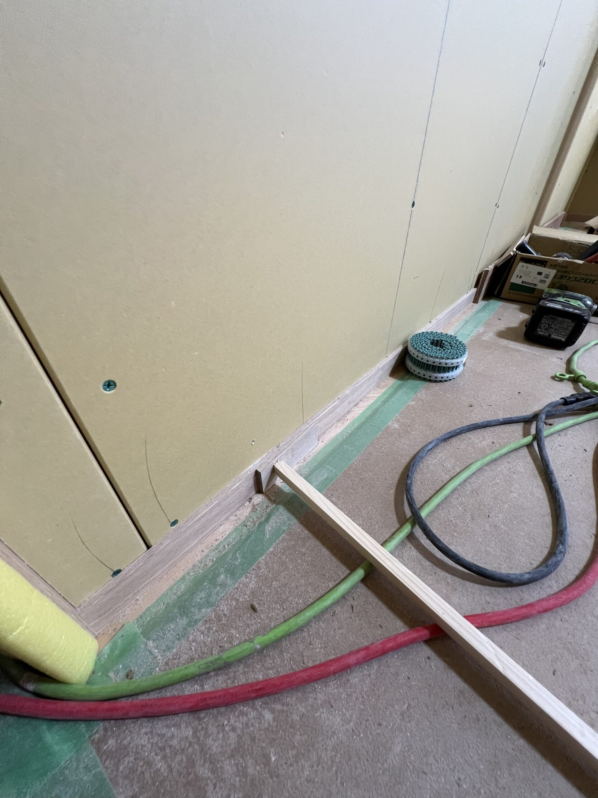 巾木は、壁と床の取り合い部分を保護するための部材で、掃除機や家具が当たっても壁を傷つけにくくする役割があります。