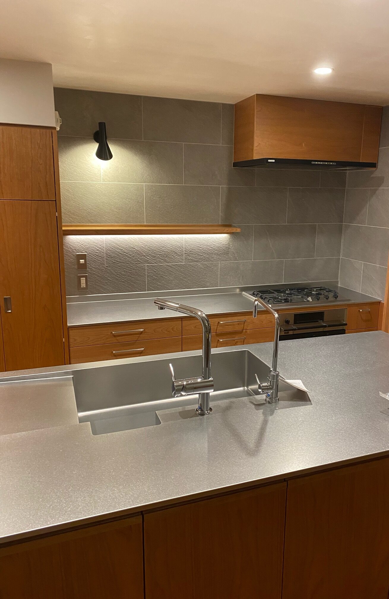 幅2メートル、厚み36ミリの地松材で、木目や色味の良いものを選び、ご提案させていただきました。