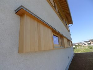戸袋部分には桧板を使用しています。