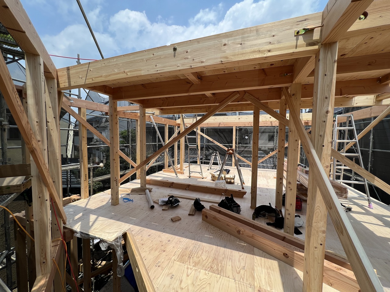 当日は大工さん6人で建て方を行い、同日に無事上棟することができました。