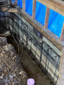リノベーション工事の耐震補強の基礎工事などでも時々ご紹介させていただいておりますが、古い布基礎の立ち上がりに新しく鉄筋の入った基礎を抱かせる方法です。