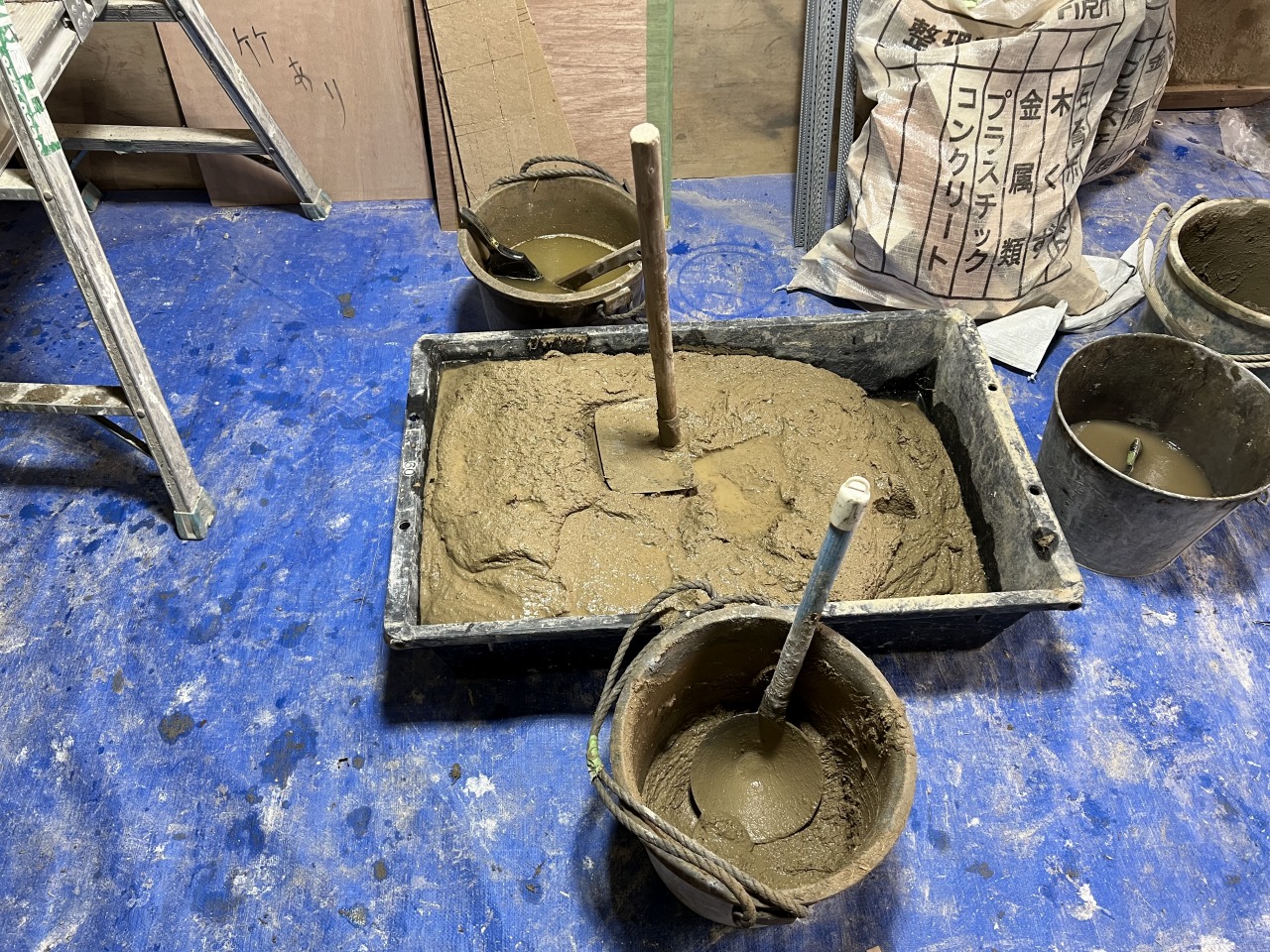 中塗土を塗った部分は、1週間から2週間乾かした後、仕上げを行います。