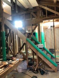 これから、階段の側面に杉の厚板で腰壁を造り、