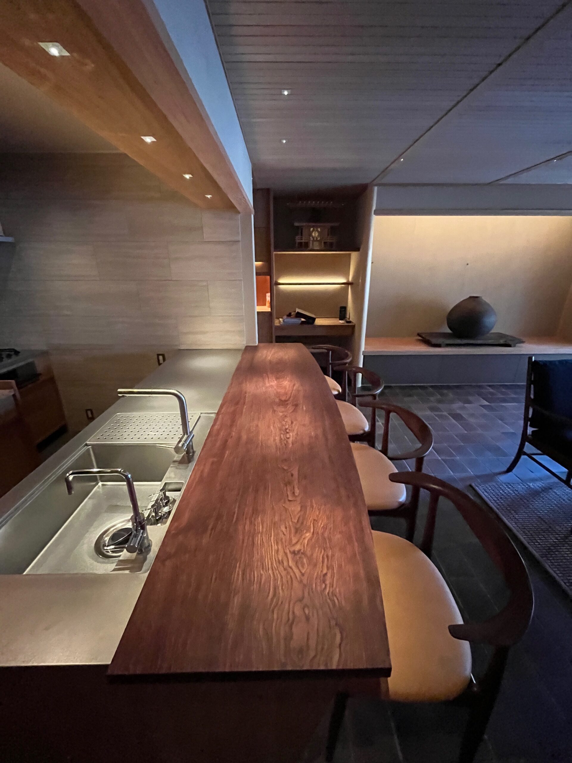 約40㎡ほどのRC造のコンパクトな空間ですが、数寄屋の要素を取り入れ、吟味した素材と丁寧な設えにより、静かな非日常の場へと生まれ変わりました。
