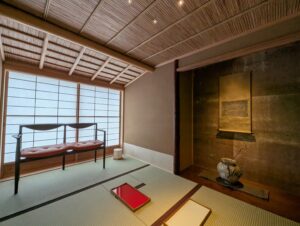 壁は、土の風合いを活かした京壁仕上げとし、左官によるやわらかな表情が感じられます。